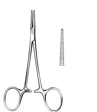 Kleszczyki typu Halstead-Mosquito, proste z ząbkiem o długości 12,5 cm.