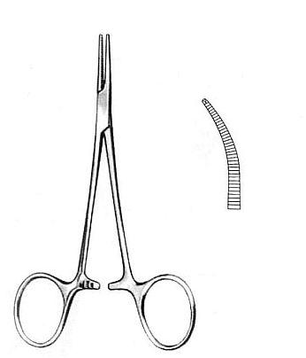 Kleszczyki typu Halstead-Mosquito TC Gold, zagięte z ząbkiem, utwardzone.