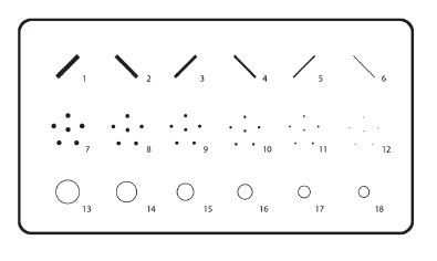 Mammo FFDM Phantom służy do oceny artefaktów na całym detektorze za pomocą jednego obrazu, co umożliwia szybkie wykrywanie obiektów od 0,14 do 1,0 mm.