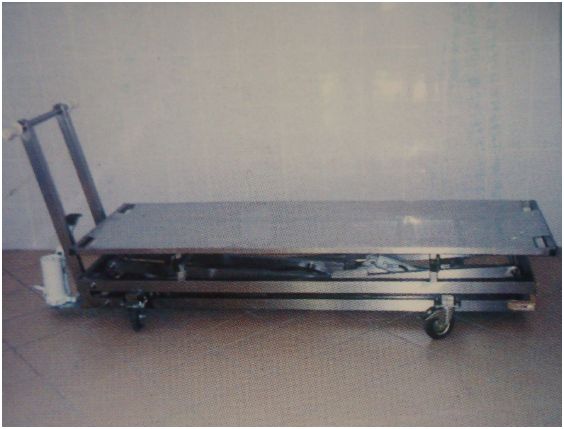 Wózek z podnoszeniem hydraulicznym z tacą płaską.