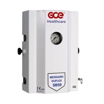 Rozdzielacz gazu GCE Medical Duplex SB50 został zaprojektowany jako trzecie zapasowe źródło gazu dla medycznych centralnych systemów gazowych. Aktywuje się, gdy nominalne ciśnienie w układzie zasilania spadnie poniżej 7 barów. Aby uzyskać optymalną wydajność, należy połączyć rozdzielacz Duplex SB50 z rozdzielaczem Duplex PNP50 i systemem alarmowym, który spełnia wszystkie standardowe wymagania alarmowe.
