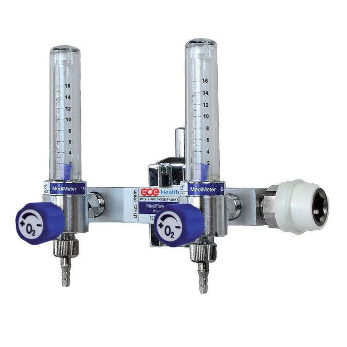 Dozowniki tlenu z nailżaczem przeznaczone są do podawania nawilzonego tlenu pacjentowi z mozliwością ustalenia wymaganego przepływu. Do regulacji przepływu służy przepływomierz rotametryczny. Za pomocą pokrętła ustalany jest przepływ w zakresie od 1 - 15 l/min. Dozowniki przystosowane są do podłączenia bezpośrednio do punktu poboru tlenu w standardzie AGA, DIN lub posiadają uchwyt do mocowania na różnego typu szynach instrumentalnych np. MODUR. Podłączenie dozownika ze źródłem tlenu nastepuje za pomocą wężyka zakończonego końcówka wtykową typ AGA lub DIN. Wyposażenie są w pojemniki nawilżacza różnego rodzaju. Pojemniki (butelki) nawilżacza są wykonywane z tworzywa sztucznego, w wersji jako jendorazowe, wielorazowe (wielokrotnego użytku) do sterylizacji autoklawowej. Pojemniki wykonane z poliwęglanu podlegają sterylizacji do 120 C, a pojemniki z polisulfonu do 134 C. Dozowniki serii A21, DT i MEDIMETER występ[ują ze wszystkimi opisanymi pojemnikami. Zakres regulacji przepływu 0-15 l/min.