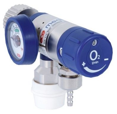 Ruchoma końcówka przepływomierza - kąt wychylenia 360 stopni - do podłączenia butli nawilżacza, maski lub kaniuli. Innowacyjne, samocentrujące pokrętło przepływomierza ułatwiające precyzyjny nastaw przepływu. Nieprzerwany przepływ strumienia gazu, również pomiędzy poszczególnymi pozycjami.