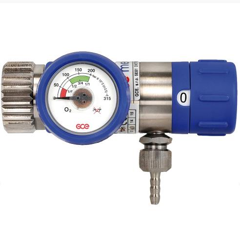 Reduktor ze skokowym nastawem przepływu i szybkozłączem.