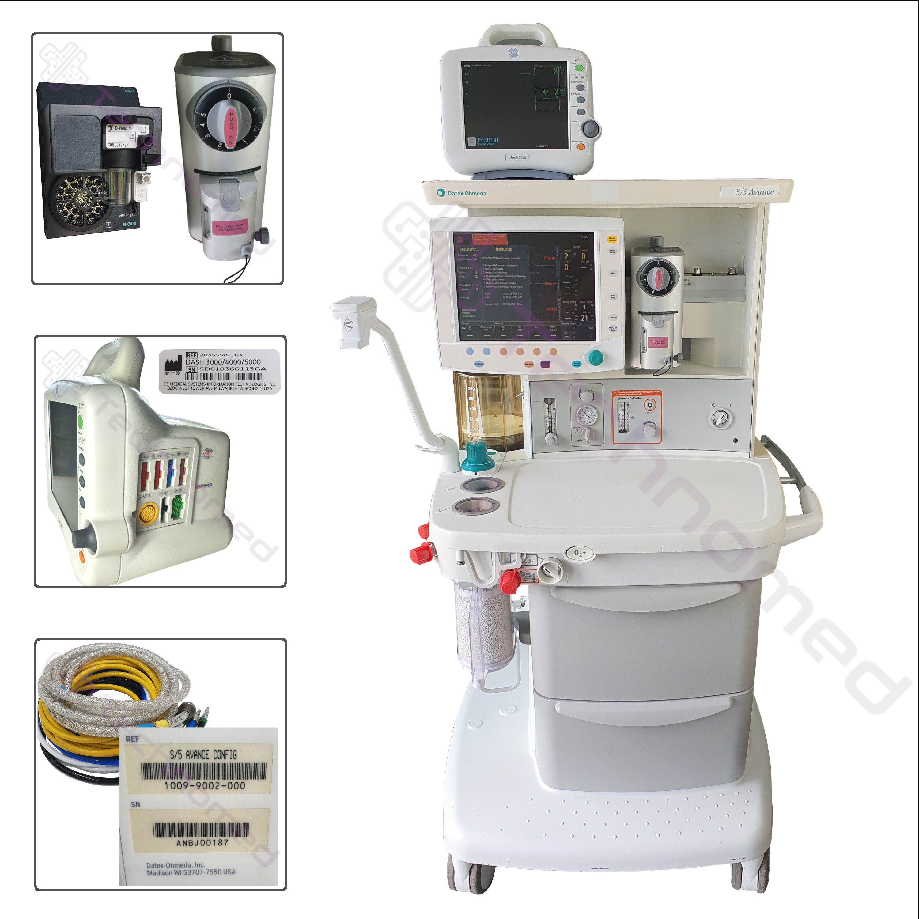 Używany aparat do znieczulania GE DATEX OHMEDA AVANCE S/5 s/n: ANBJ00187, rok produkcji 2005, dotychczasowe godziny aktywnej pracy: 48 180.