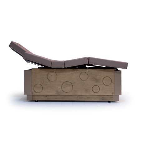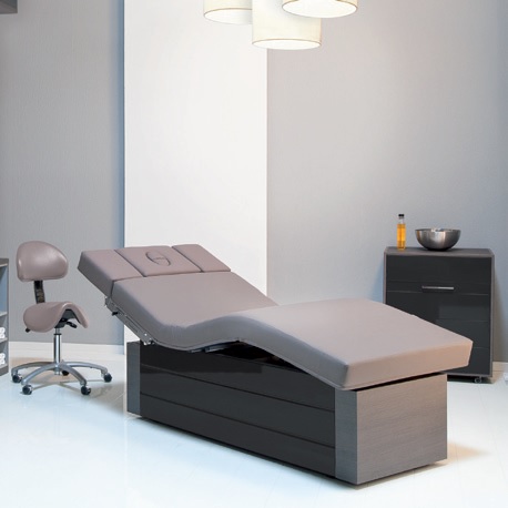 Najnowsza leżanka do strefy Wellness w nowoczesnym design. Pomimo bardzo wygodnej niskiej strefy wsiadania na tą leżankę (57cm) udało się wygospodarować szufladę, w której można przechowywać np. zapasowe podłokietniki lub pokrowce.