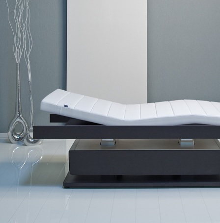 Najnowsza leżanka do strefy Wellness w nowoczesnym design. Pomimo bardzo wygodnej niskiej strefy wsiadania na tą leżankę (57cm) udało się wygospodarować szufladę, w której można przechowywać np. zapasowe podłokietniki lub pokrowce.
