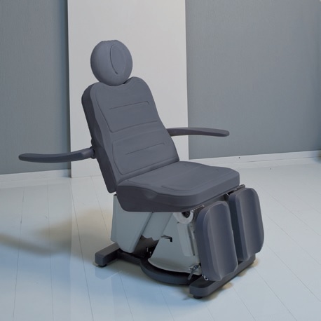 co ułatwia refleksoterapię. Maksymalna wysokość zabiegowa 95 cm umożliwia wykonanie masażu w pozycji poziomej, a wycięcie w zagłówku zapewnia komfort klientowi w pozycji na brzuchu. 9 pozycji zabiegowych można zaprogramować przy pomocy funkcji Memory. Fotel można sterować za pomocą różnych systemów, m.in. pilot z kablem, pilot bezprzewodowy