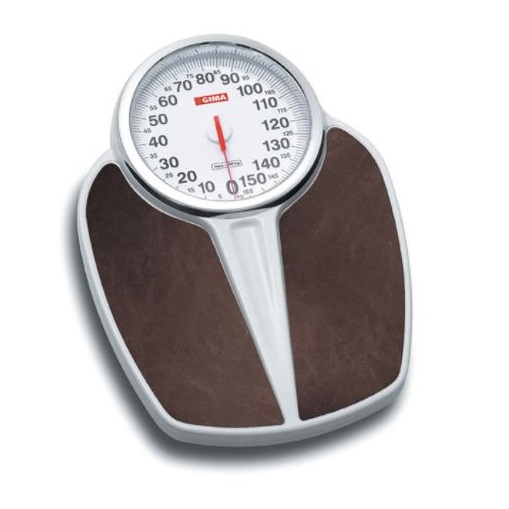 Mechaniczna waga z klasycznym wzorem: duża i jasna tarcza, solidna obudowa wykonana ze stali.