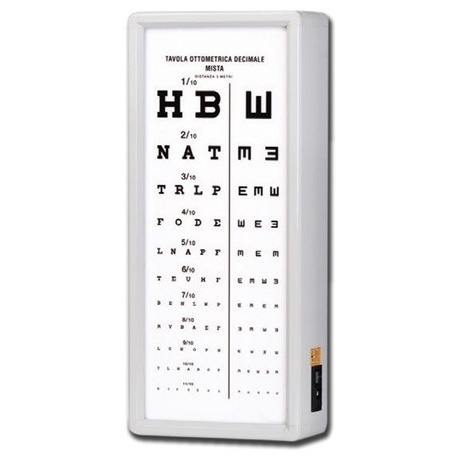 Podświetlana Tablica Okulistyczna z pilotem dla dorosłych i dzieci (Tablica Snellena). Tablice podświetlane optometryczne wykonane wedle wytycznych lekarzy. Płyta czołowa wytworzona została ze szkła akrylowego. Atest CE.