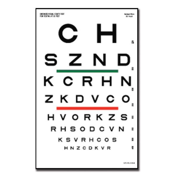 Tablica optometryczna kartonowa wykorzystywana w diagnostyce ostrości wzroku. Czarne optotypy naniesione na białe tło zapewniają dokładność i komfort badania. Tablica przeznaczona jest do badań na odległość 6 metrów.
