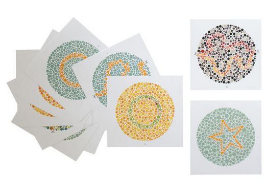 Tablice typu Ishihary dla dzieci (test typu Ishihary, tablica pseudoizochromatyczna). Tablice pseudoizochromatyczne przeznaczone do badania widzenia barw u dzieci. Tablice umieszczone są w komfortowej w użyciu aluminiowej puszcze, zabezpieczając jednocześnie tablice przed zniszczeniem. Tablice zawierają 10 testów wykonanych z białego matowego papieru o dużej gramaturze. Materiał: papier.