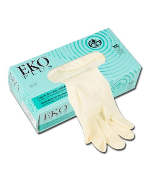 Oburęczne rękawice lateksowe z lamówką, niejałowe.