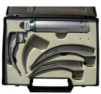 Zestaw laryngoskopowy zgodny z normą ISO 7376: 2003, pasuje do uchwytów innych producentów oznaczonych zielonym paskiem: HEINE, RIESTER, WELCH ALLYN, MEDICON. Źródło światła halogenowego w uchwycie prowadzone przez bardzo szeroką wiązkę światłowodową (Ø 5,0 mm), żeby uzyskać zimne, jaśniejsze oświetlenie. Wszystkie wiązki F.O. można łatwo zdemontować przed procedurą sterylizacji, aby zapobiec uszkodzeniom i zapewnić dłuższą trwałość.