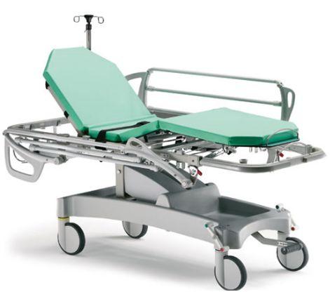 4-selcyjne leże z regulacją wysokości. Najnowszej generacji wózek do przewożenia pacjentów w pozycji leżącej. Rama leża wykonana jest ze stali malowanej proszkowo wypełniona jest tworzywem prześtlnym dla promieniowania RTG. W narożnikach wózka zamontowane są specjalne listwy zabezpieczające przed uderzeniami oraz otwory umożliwiające zamocowanie wyposażenia dodatkowego, od strony głowy umieszczona została obejma dla butli z tlenem oraz rolka na papier. Sekcje pleców oraz sekcja ud regulowana jest za pomocą sprężyny gazowej, natomiast regulacja wysokości odbywa się za pomocą dźwigni hydraulicznej umieszczonej po nożnej stronie wózka. Podstawa wózka wykonana ze spacjalnego tworzywa odpornego na środki dezynfekcyjne z dwoma przegrodami na dodatkowe akcesoria.
