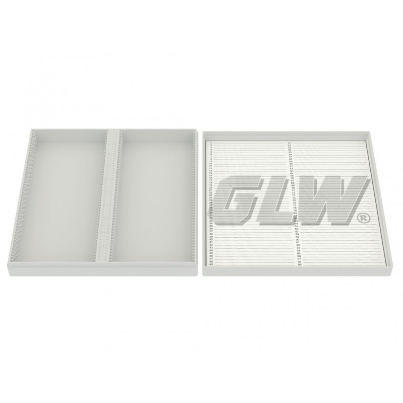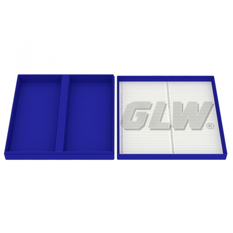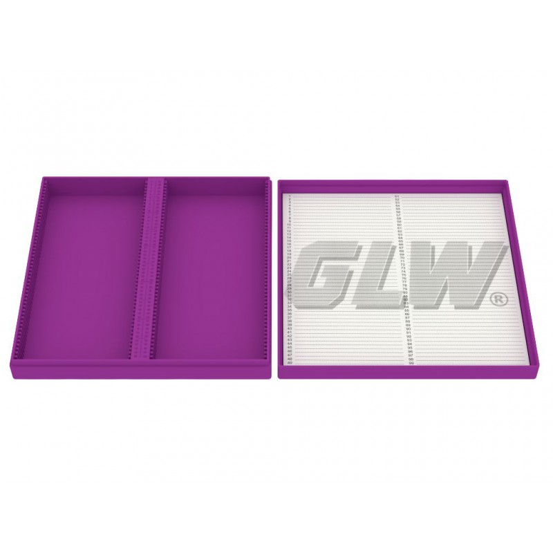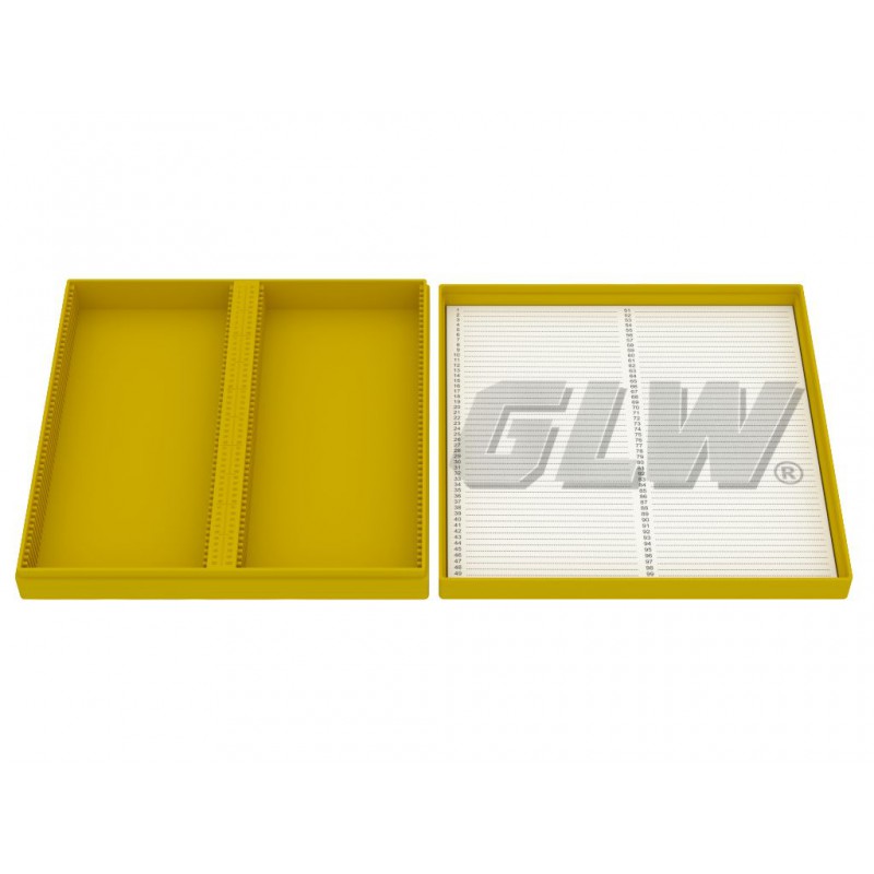 - Pudełko na szkiełka mikroskopowe z polistyrenu / do zamrażania do -80°C i wytrzymałe do +70°C
