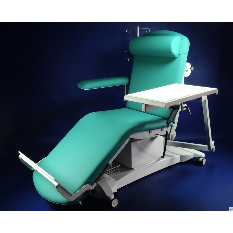 • Fotel wyposażony w stojak płynow infuzyjnych z możliwością szybkiego przemieszczania stojaka z prawej na lewą stronę.