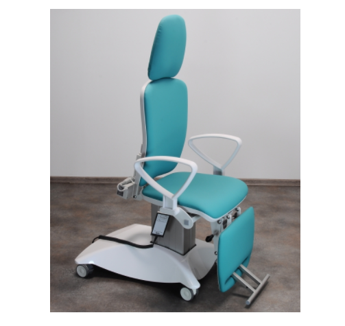 Czterosegmentowa powierzchnia robocza zapewnia komfort pacjenta podczas badania oraz zabiegów laryngologicznych. Fotel zajmuje mało miejsca w gabinecie i jest bardzo łatwy w przemieszczaniu. W standardzie rotacja 90o lewo/prawo, jezdna podstawa, podrączki pacjenta, wysuwana podpórka pod stopy pacjenta;