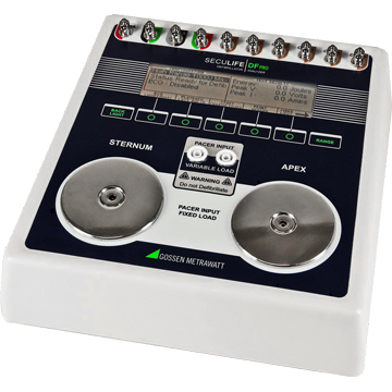 Tests monophasic, biphasic and pulsed biphasic defibrillators