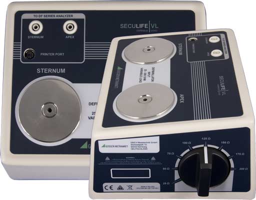 SECULIFE VL, works in conjunction with SECULIFE DF Series Defibrillator Analyzers, providing Variable Loads used when testing Defibrillators to assure the proper electrical current is delivered to the heart, per IEC 60601-2-4 and AAMI DF80 standards. Automatic detection of loads, no settings to change or configure in the SECULIFE DF PRO. Ensure that the correct load is selected in the Defibrillator output pulse measurement.