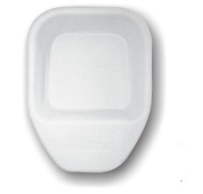 Naczynie jednorazowe z pulpy celulozowej przeznaczone do utylizacji w maceratorze.