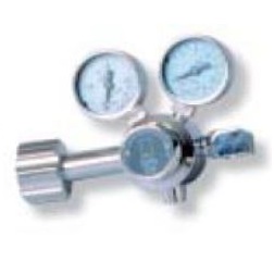 Reduktor medyczny zgodny z normą PN-EN 738-1 do tlenu medycznego, przepływ regulowany w zakresie 0-15 l/min, dokręcany ręcznie zgodny z DIN 477, chromowany, manometr wysokiego ciśnienia i manometr z przepływem, obudowa, końcówka pod butelkę do nawilżania gazu.