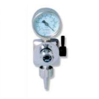 Regulator wysokiej próżni z metalową chromowaną obudową wyposażony w zawór szybkiego otwarcia i wakuometrem, wtykany lub szynowy. Do modelu szynowego wąż trzeba zamawić osobno.