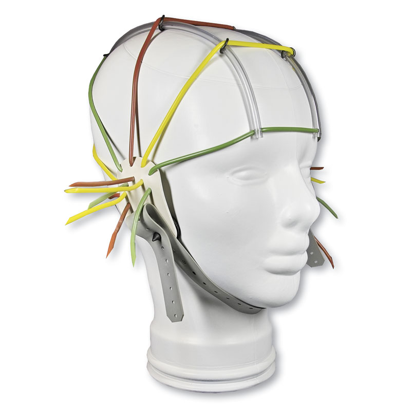 Czepek regulowany wykonany z miękkiego silikonu. Konstrukcja oraz materiały z jakich wykonany jest czepek zapewniają maksymalny komfort pacjenta oraz łatwe dopasowanie czepka do głowy. Czepek można dokładnie regulować za pomocą dwukierunkowych punktów połączeń i regulowanych pasków, dzięki czemu można uzyskać pozycje elektrod dla systemu rejestrującego 10/20. Pasek pod brodą wykonany jest z elastycznej taśmy z rzepem lub/i zatrzaskami, a miseczka podbródka z miękkiego, wygodnego materiału. Czepek do badań EEG do wykorzystania z elektrodami grzybkowymi / mostkowymi.