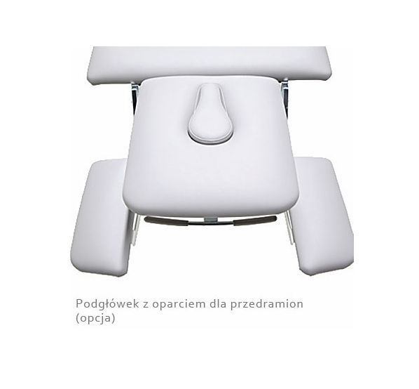 Uniwersalny trzyczęściowy stół masażu w pozycji siedzącej i leżącej z regulowaną sekcją zagłówka.