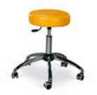 Taboret BINGO z podgumowymi kółkami. Dzięki chromowanej sprężynie gazowej możemy regulować wysokość taboretu, zaś dzięki kółkom łatwo się przemieszczać.