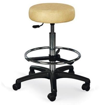 Taboret GAMMA z podgumowymi kółkami i wygodnym podnóżkiem. Dzięki chromowanej sprężynie gazowej możemy regulować wysokość taboretu. Jest zarówno elegancki jak i solidny.