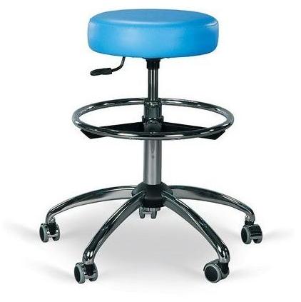 Taboret OMEGA z podgumowymi kółkami,wygodnym podnóżkiem i chromowanymi stopkami. Dzięki sprężynie gazowej możemy regulować wysokość taboretu. Jest zarówno elegancki jak i solidny.