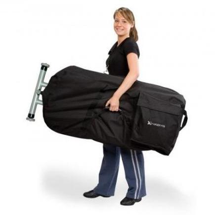 Pokrowiec posiada: pojemną kieszeń, pas na ramię, wygodny uchwyt ułatwiający transport, specjalne wycięcie umożliwiające transport krzesła na kółkach.
