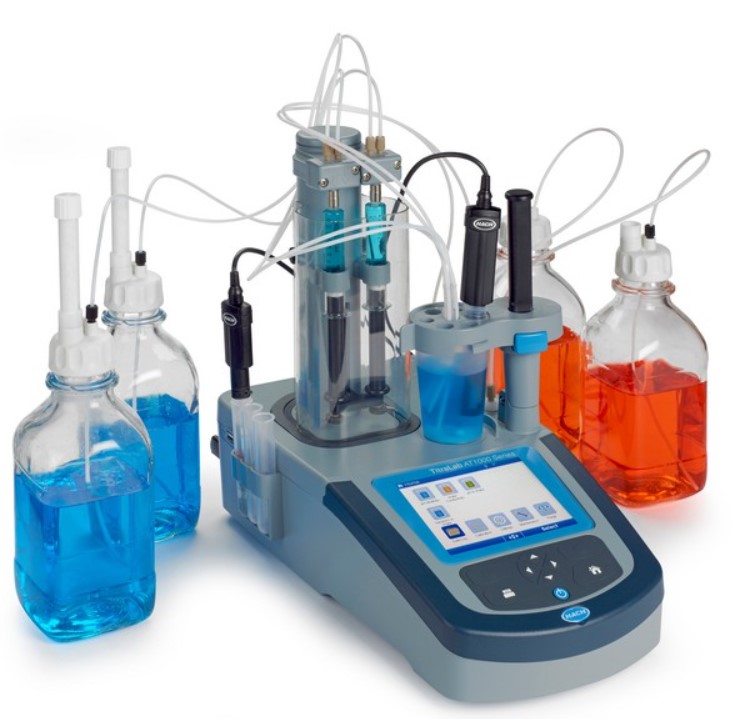 Precyzyjne titratory z serii AT1000 do rutynowych analiz. Solidna obudowa, prosta obsługa w języku polskim. Wstępnie zaprogramowane metody analityczne. Miareczkowania pH-metryczne, potencjometryczne oraz oznaczanie wody metodą Karla Fishera i SO2. Titratory posiadają jedną biuretę lub system dwóch niezależnych biuret - bez konieczności odpinania biurety po zmianie titranta. Możliwość rozbudowy urządzenia o automatyczny podajnik próbek oraz pompy perystaltyczne do dozowania odczynników pomocniczych lub rozpuszczalników.