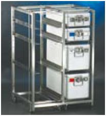 Stelaż wsadowy systemu Shuttle, na 6 jednostek wsadowych STE, konstrukcja z rurki ze STALI NIERDZEWNEJ o przekroju kwadratu (25 x 25 mm), materiał 1.4301, solidnie spawana, pozbawiona ostrych krawędzi, 6 par prowadnic z możliwością pionowej regulacji ustawienia do kontenerów lub koszy sterylnych 1 STE, szeroka blokada zakotwiczająca stelaża umożliwia jego obsługę (wprowadzenie do / wysunięcie z) transportera Shuttle zarówno z przodu, jak i z boku, nadaje się do sterylizacji, 4 antystatyczne kółka stałe o średnicy 75 mm, wymiary: 685 x 600 x 1050 mm (szer. / gł. / wys.)