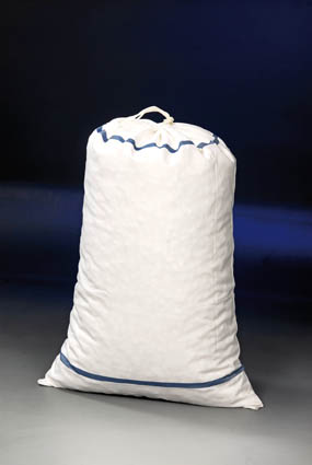 Worek do transportu prania- zamknięty, pełnobarwny z 2 dodatkowymi paskami znakującymi, dostępne kolory: niebieski, czerwony, zielony, żółty, brązowy, szary, wyposażony w uchwyt i wciągnięty sznurek do zamykania worka, pojemność: 15 kg, 100% Poliester, dostępne również: indywidualne znakowanie worków