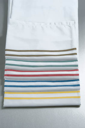 Worek do transportu prania- samorozwijający się, biały z 2 podwójnymi kolorowymi paskami znakującymi, dostępne kolory pasków: niebieski, czerwony, zielony, żółty, brązowy, szary, wyposażony w 2 przetyczki po wewnętrznej i zewnętrznej stronie, dzięki czemu nie ma potrzeby wywijania worka po cyklu prania, wypełniony worek jest wrzucany do maszyny piorącej, zawartość jest uwalniana podczas pierwszych sekund prania, pojemność: 12 kg (70 l), 100% Poliester, dostępne również: indywidualne znakowanie worków