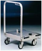 Wózek przekaźnikowy Shuttle, STAL NIERDZEWNA, materiał 1.4301, z mechanizmem do bezpiecznego przyjęcia i zatrzymania stelaża wsadowego EGSTE6E60 lub EGSTE6, mechanizm zakotwiczający do bezpiecznego połączenia wózka z transporterem RGEESTE6 systemu Shuttle (blokada umieszczona w uchwycie), 3-stronny zderzak z tworzywa, 4 antystatyczne kółka obrotowe (2 z blokadą) o średnicy 125 mm, w oprawie stalowej, wymiary: 785 x 640 x 945 mm (szer. / gł. / wys.)