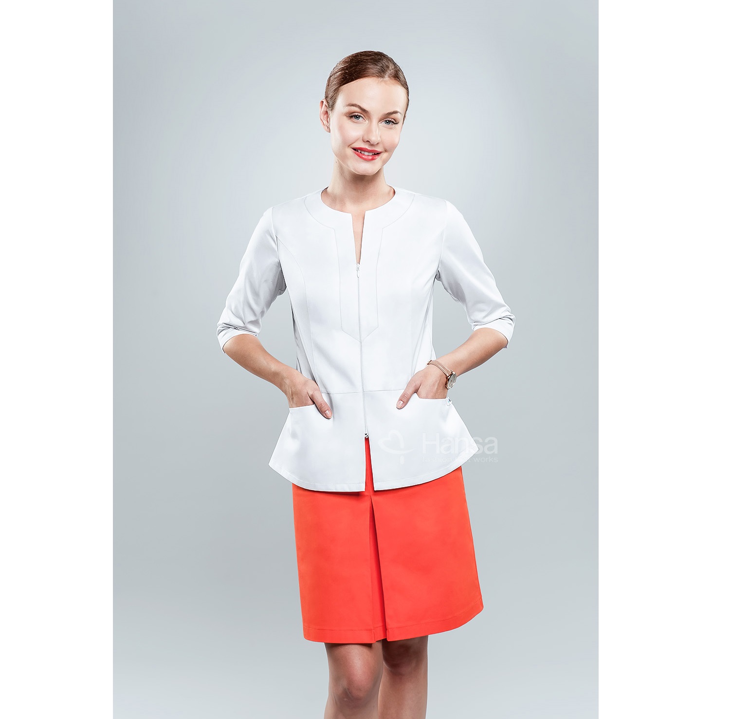 Tkaniny elanobawełniane tkane są diagonalne (2/1). Za wartość poliestru sprawia, że nie gniotą się tak, jak tka niny bawełniane, łatwo się prasują, charakteryzują się dobrą przewiewnością. Tkaniny, z których uszyto odzież, spełniają obowiązujące Polskie Nomy ustanowione przez Komitet Normalizacji Miar i Jakości, posiadają certyfikaty Eko-TEX. Do produkcji odzieży używamy dodatków najwyższej jakości: nici z certyfikatami jakości, guzików odpornych na topienie podczas prasowania i gotowania oraz nierdzewnych zatrzasków typu „Spring” bez dodatku niklu