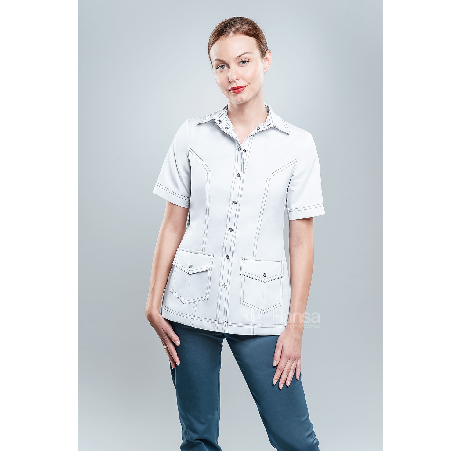 Tkaniny elanobawełniane tkane są diagonalne (2/1). Za wartość poliestru sprawia, że nie gniotą się tak, jak tka niny bawełniane, łatwo się prasują, charakteryzują się dobrą przewiewnością. Tkaniny, z których uszyto odzież, spełniają obowiązujące Polskie Nomy ustanowione przez Komitet Normalizacji Miar i Jakości, posiadają certyfikaty Eko-TEX. Do produkcji odzieży używamy dodatków najwyższej jakości: nici z certyfikatami jakości, guzików odpornych na topienie podczas prasowania i gotowania oraz nierdzewnych zatrzasków typu „Spring” bez dodatku niklu