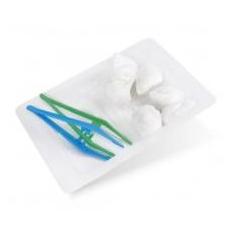 Tacka typu blister z 3 wgłębieniami na płyny, może posłużyć jako pojemnik na odpadki. Wszystkie komponenty zestawu są jednorazowego użytku.