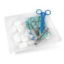 Tacka typu blister z 3 wgłębieniami na płyny, może posłużyć jako pojemnik na odpadki. Wszystkie komponenty zestawu są jednorazowego użytku.
