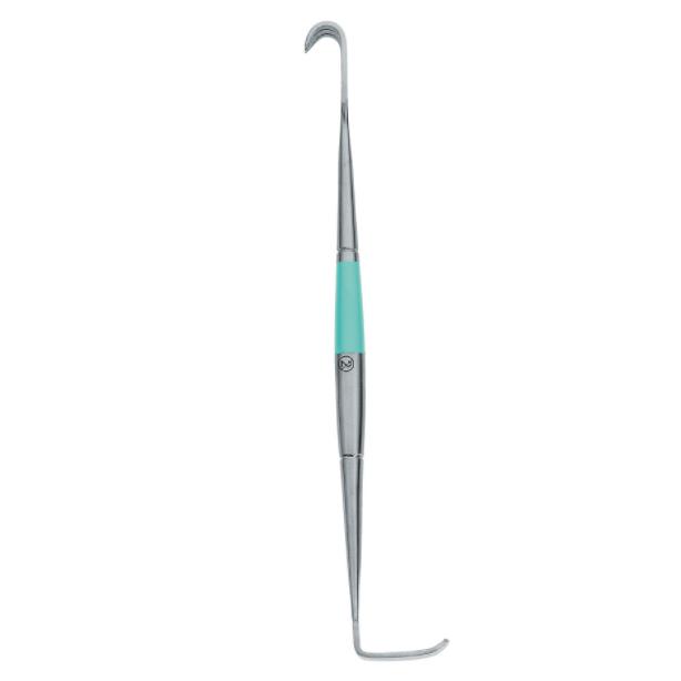 - Ekonomiczny (2w1) hak do ran ze stali nierdzewnej, który łączy funkcje haka Langenbeck i haka trójzębnego ostrego.