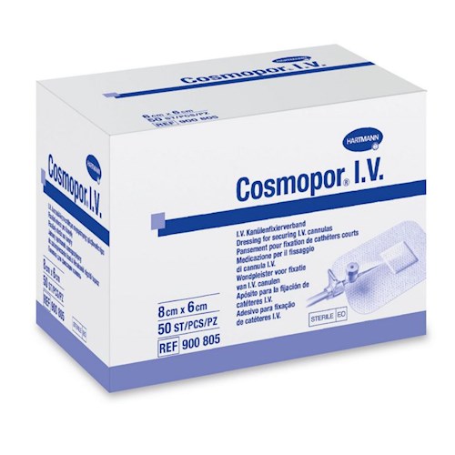 Samoprzylepny opatrunek do mocowania kaniul z wcięciem; miękka włóknina przepuszcza powietrze i parę wodną; zaokrąglone rogi zapobiegają uciążliwemu zwijaniu się włókniny; stanowi niezawodną ochronę przed zanieczyszczeniami dzięki obwodowo rozmieszczonej, szczelnie zamykającej opatrunek warstwie przylepnej; dodatkowo miejsce wkłucia jest zabezpieczone przy pomocy poduszeczki wyściełajacej, która chroni pacjenta przed uciskiem spowodowanym przez kaniulę;