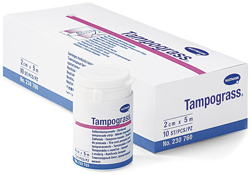 Opatrunek do tamponady gazy bawełnianej, impregnowanej obojętnym żelem Tampograss: