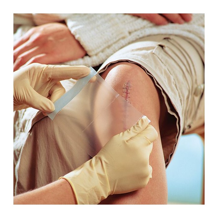 Transparentny, samoprzylepny, jalowy opatrunek z folii, wodoodporny - skutecznie zatrzymuje bakterie i brud chroniąc ranę przed infekcją, paroprzepuszczalny - przepuszcza parę wodną i tlen, nie zakłócając swobodnego oddychania skóry, pokryty hipoalergicznym klejem nie powoduje podrażnień skóry także podczas zdejmowania.
