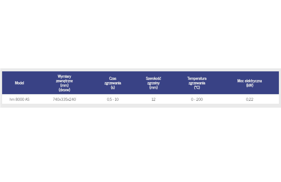 Pouchmaker hm 8000 AS/AS-V w pełni kontroluje krytyczne parametry procesu takie jak: temperaturę, siłe docisku oraz czas zgrzewu; spełniając wymogi Normy PN-EN ISO 11607-2 oraz rekomendacje komisji ISO/TS 16775.