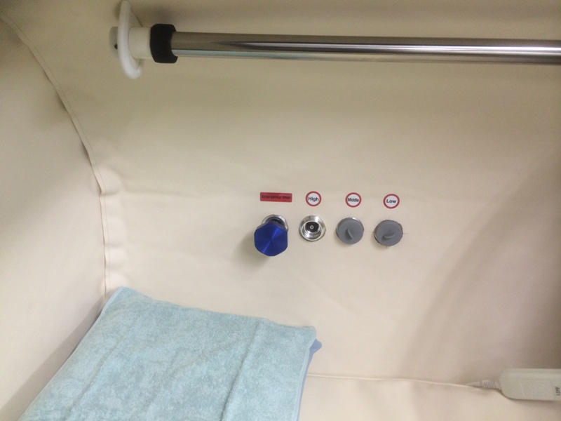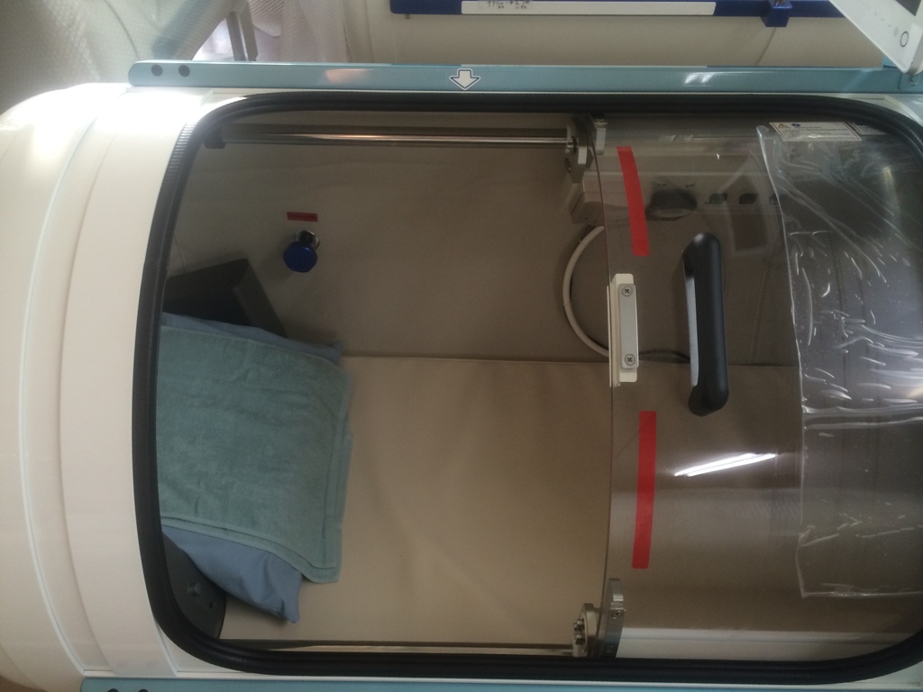 - Komora wypełniona jest powietrzem w 100%, a tlen dostarczany jest za pomocą wbudowanego systemu oddechowego poprzez Caniulę lub Maskę. Takie rozwiązanie jest bezpieczniejsze niż w przypadku wielu komór jednomiejscowych, które NIE stosują maski, natomiast napełniane są 100% tlenem.