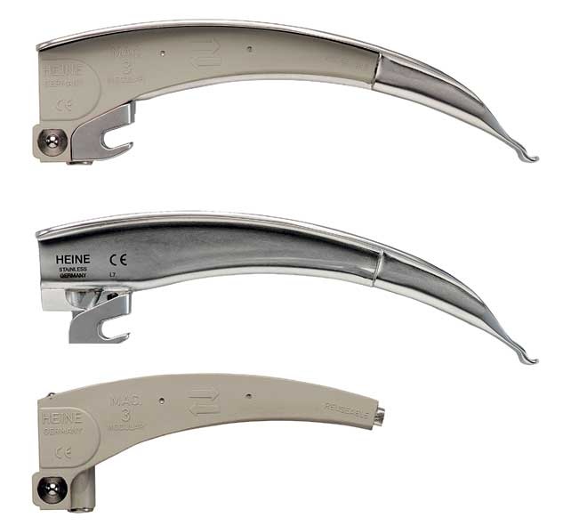 Łyżki laryngoskopowe światłowodowe HEINE Mac Modular+ (US Patent 6,139,491): zarówno sama metalowa łyżka laryngoskopowa jak i moduł światłowodowy mogą być sterylizowane w autoklawie. Moduł światłowodowy może być założony na łyżkę i zdjęty w jednej chwili, bez pomocy śrubokręta. Moduł światłowodowy nie wchodzi w linię wzroku i nie utrudnia wizualizacji wejścia do krtani, co czyni procedurę intubacji łatwiejszą i bezpieczniejszą.
