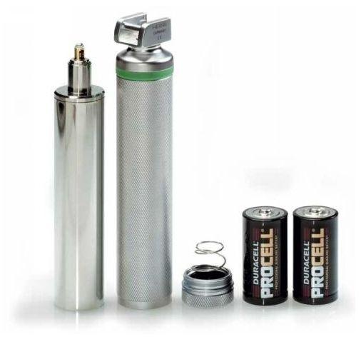 > Rękojeści światłowodowe HEINE z bateriami alkalicznymi mogą być łatwo przerobione na rękojeści światłowodowe z zasilaniem akumulatorowym 3,5 V poprzez włożenie baterii akumulatorowej i wymianę końcówki rękojeści oraz żarówki 2,5 V na 3,5 V).